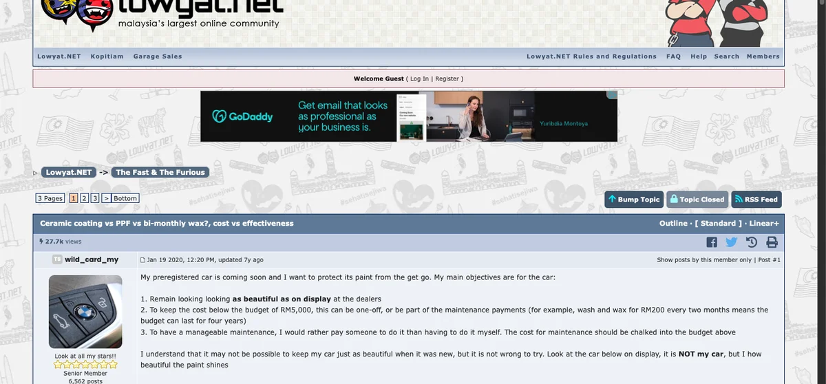 !Lowyat forum thread where Malaysian car owners debate ceramic coating worth Figure: A Lowyat forum thread debating ceramic coating vs PPF vs regular waxing. The divided opinions reflect real-world frustrations with inconsistent quality.
